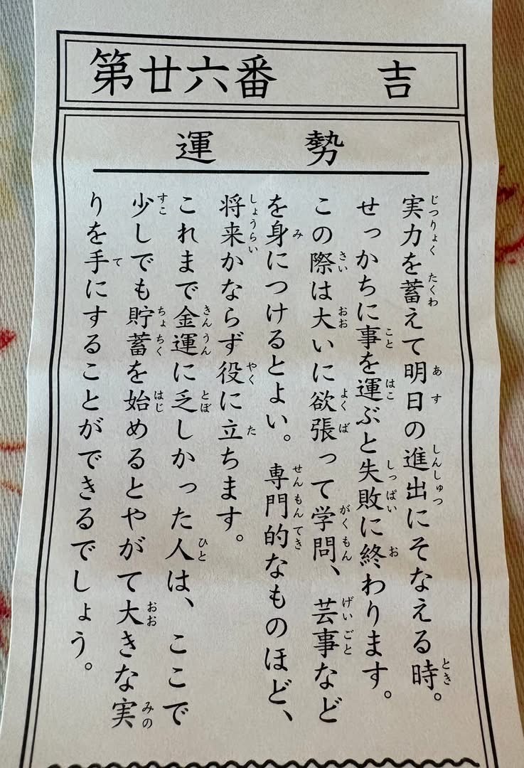 今年のおみくじは「吉」
